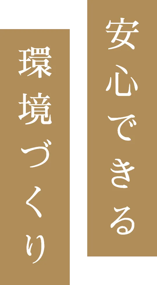 インプラント治療は治療費も高額でありオペも伴うため、ご不安に思われる方がたくさんいらっしゃいます。少しでもご負担を軽く、そしてご安心頂けますように、清潔でリラックスできるような落ち着いた空間づくりを心掛けております。